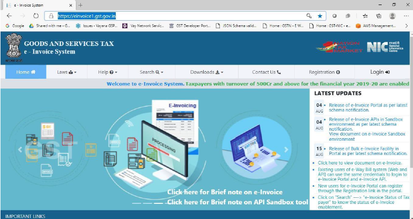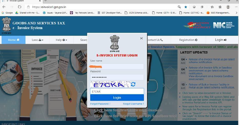 Step 1: Login to NIC E-Invoice Web Portal on -